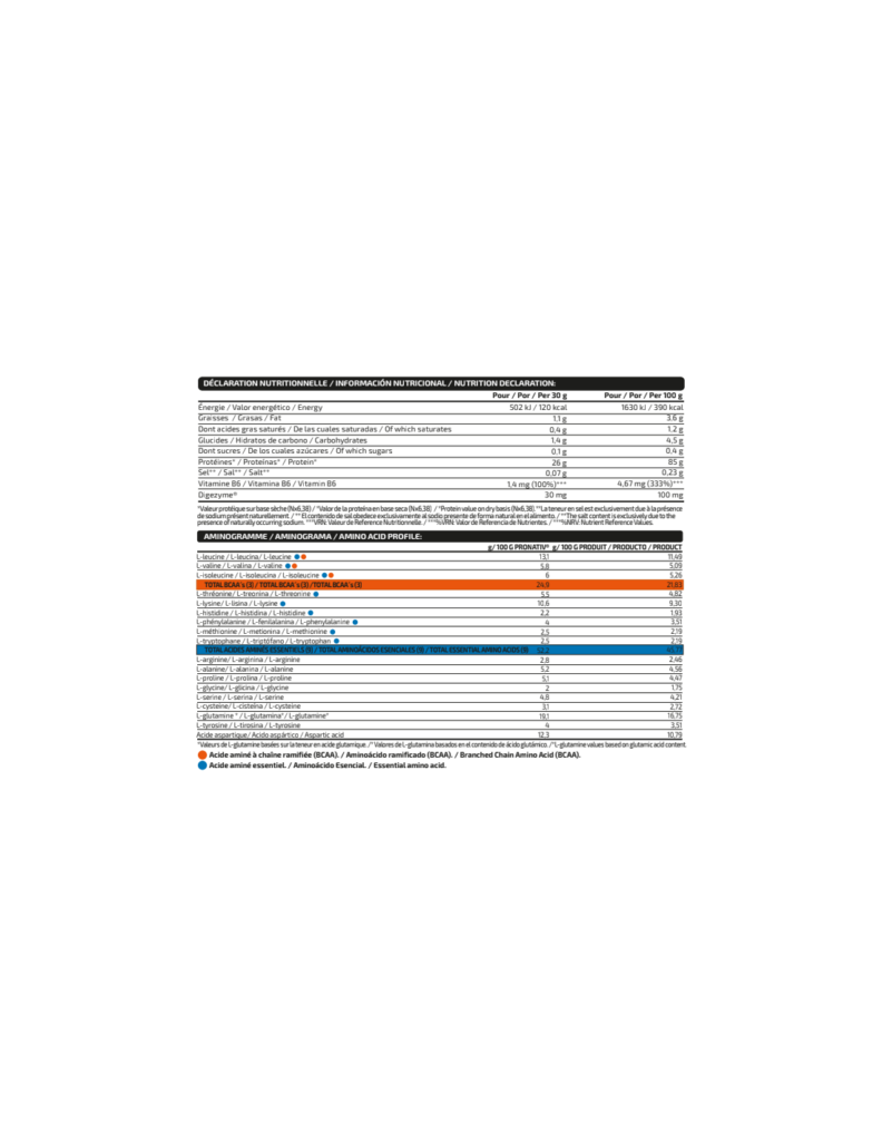 – Apport en protéines totalement sans sucres et pauvre en matières grasses.